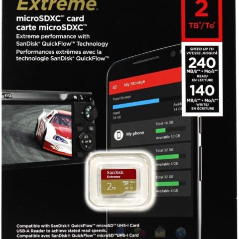 SanDisk Extreme microSDXC UHS-I Card 2TB Up to 240MB/s read speed and 140MB/s write speed