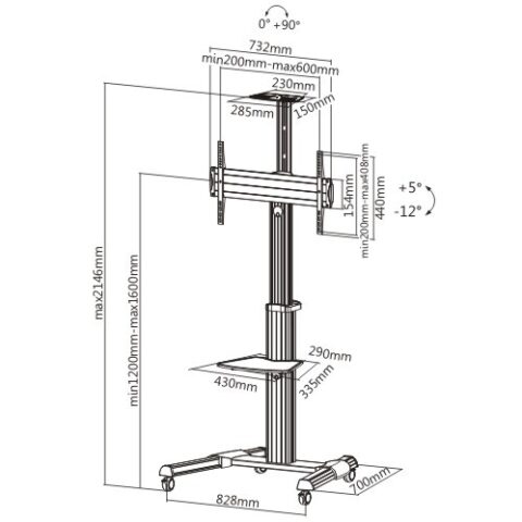 TTV04-46TW Height adjustable TV Cart/TV Floor Stand for 37-70”
