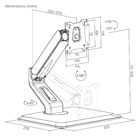 LDT69-C012 Desk Mounted Heavy Duty Gas Spring Monitor Arm