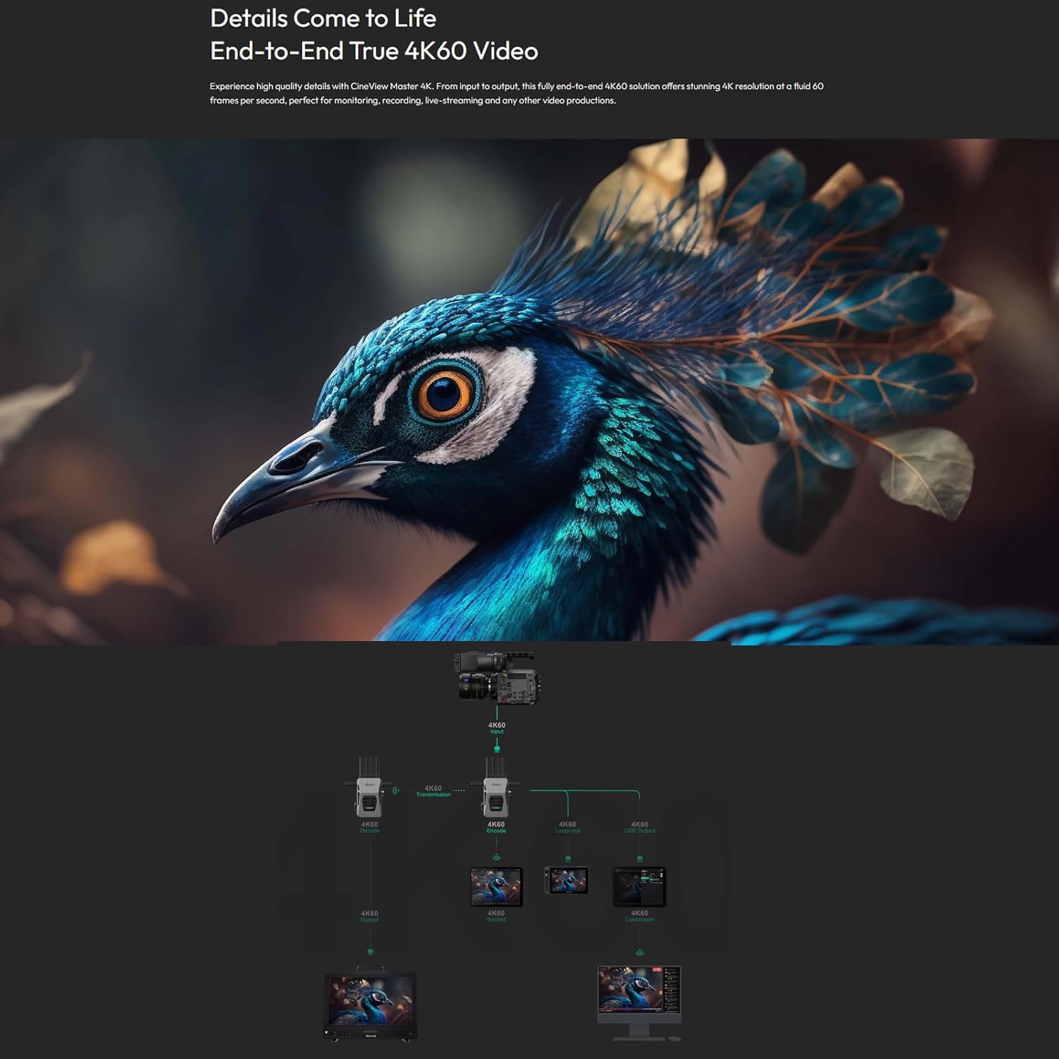 - [Details Come to Life End-to-End True 4K60 Video] Experience high quality details with CineView Master 4K. From input to output, this fully end-to-end 4K60 solution offers stunning 4K resolution at a fluid 60 frames per second, perfect for monitoring, recording, live-streaming and any other video productions.