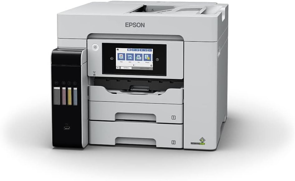 Key Features Ultra-low cost, 4-in-1 A4 printer Economical ink tank system Fast print and scan speeds Print up to 25 ppm and scan up to 27.5 ipm Easy to use front ink tank Enjoy hassle and mess-free refills with enhanced ink bottles Mobile printing and connectivity Wi-Fi, Wi-Fi Direct, Ethernet & free mobile printing apps Designed for business 2 x 250-sheet front tray, 50-sheet rear feed, 50-sheet ADF, PCL & PS