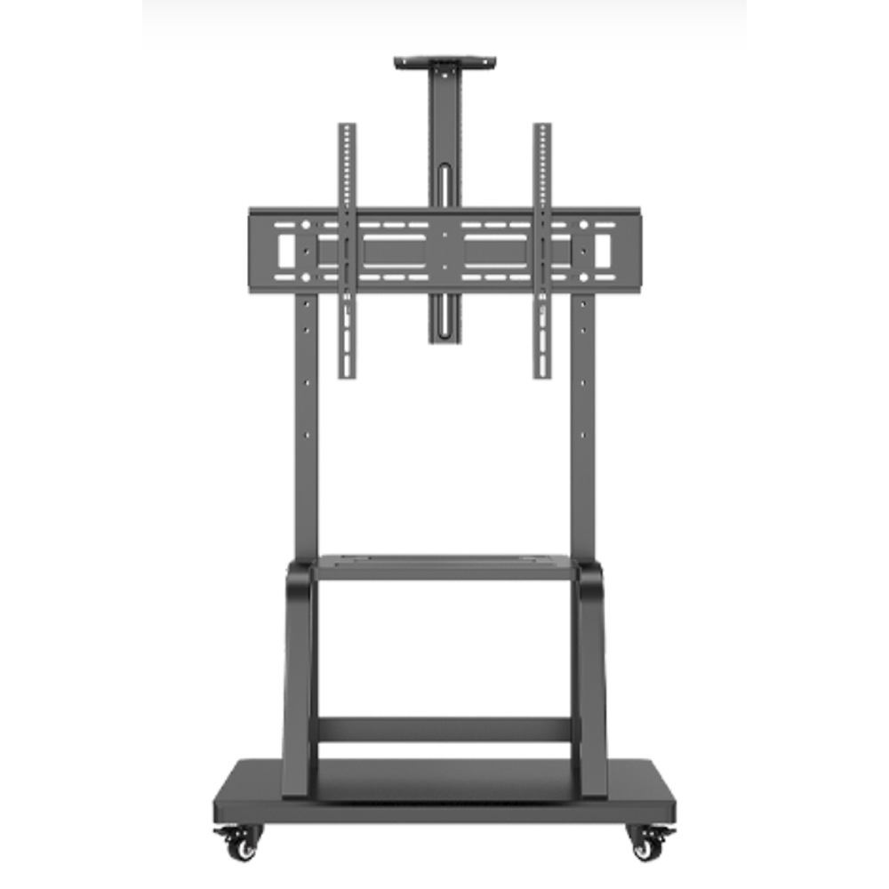 The FD5800 IFPD Trolley Stand is a heavy-duty mobile mount designed for large interactive flat panel displays. Built with a reinforced steel frame, wide base, and lockable caster wheels, it ensures stability and smooth mobility in professional environments.