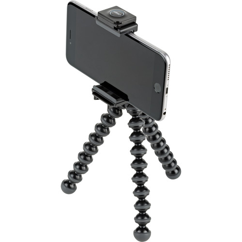 Supporting a multitude of different equipment weighing up to 1.1 lb, the GripTight GorillaPod Action Stand with Mount for Smartphones Kit from Joby consists of a stand with an integrated pin-joint mount that connects to a smartphone clamp mount. You can deploy the tripod without the smartphone mount for use with GoPro cameras and other action equipment, or attach the clamp to easily shoot selfies or panoramic shots with your phone. Additionally, a cold shoe adapter can be found at the top of the clamp for use with shoe-mounted gear such as microphones and LED lights.