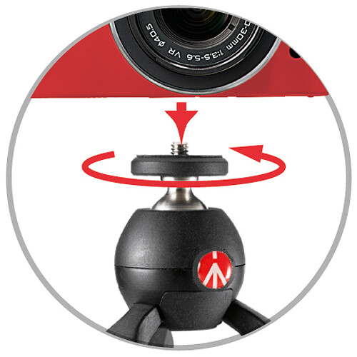 The PIXI Mini Table Top Tripod from Manfrotto doubles as a tabletop tripod and a handheld grip support for a DSLR, point and shoot, or compact camcorder. The legs are rounded on their outer side, so the closed tripod provides a comfortable hand grip. When open, the tripod and head have a maximum height of 5.3″. Rubber feet prevent slipping and protect delicate surfaces.
