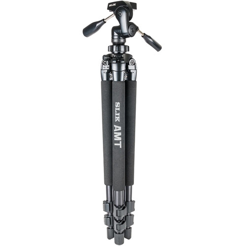 This black,SLIK Pro 700 DX Tripod with 700 DX 3-Way, Pan-and-Tilt Head supports up to 19.8 lb, measures 29.9″ when folded, and includes a quick release plate. Each of its 3-section legs features an independent spread, a 3-position angle lock, and flip locks for fast deployment. The included push-and-pull, rapid center column is multi-sectional, which allows it to be converted to a shortened center column. This feature permits a minimum height of 25.4″ or 16.1″ when the center column is shortened. The SLIK Pro 700 DX Tripod provides a maximum height of 60.0″, 65.8″ with its center column shortened as well as fully raised, and 75.0″ with the complete column fully raised.
