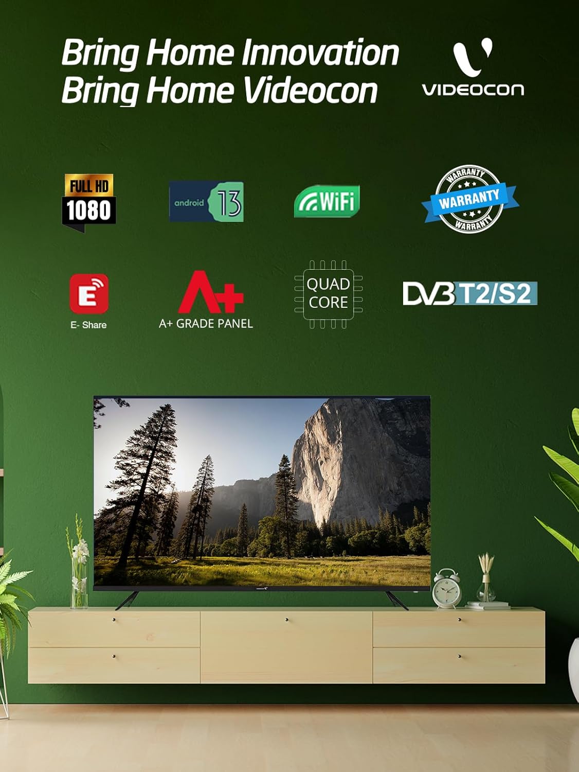 Videocon 43'' Full HD Android 14 Smart TV Edgeless- E43EL1100