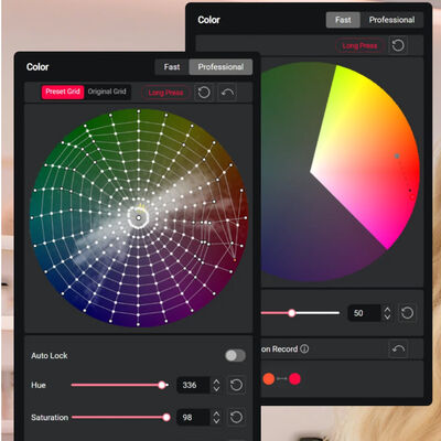 The software provides advanced color tools to manually adjust settings such as hue, saturation, and brightness, and it also provides quick-access presets.